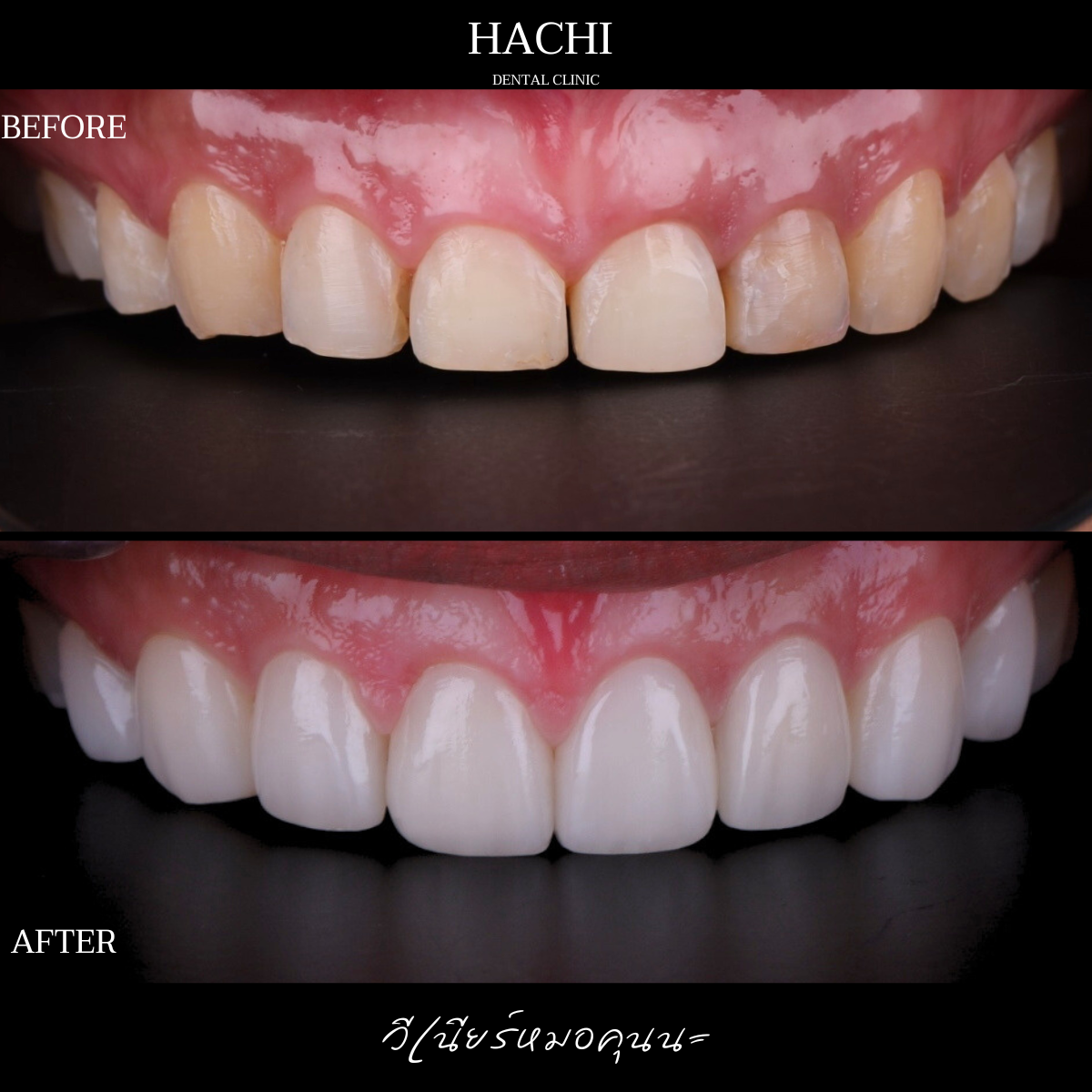 “哈希牙科诊所 | Hachi Dental Clinic - 提供专业的牙科美容服务,由朱拉隆功医院专业医生团队亲自操作,通过高品质的陶瓷贴面,为您量身打造个性化的新笑容,让您对自然之美充满自信。”